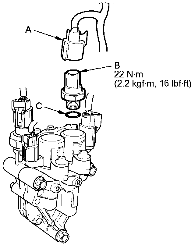 3. Install the parts in the reverse order of removal with a new O-ring (C).