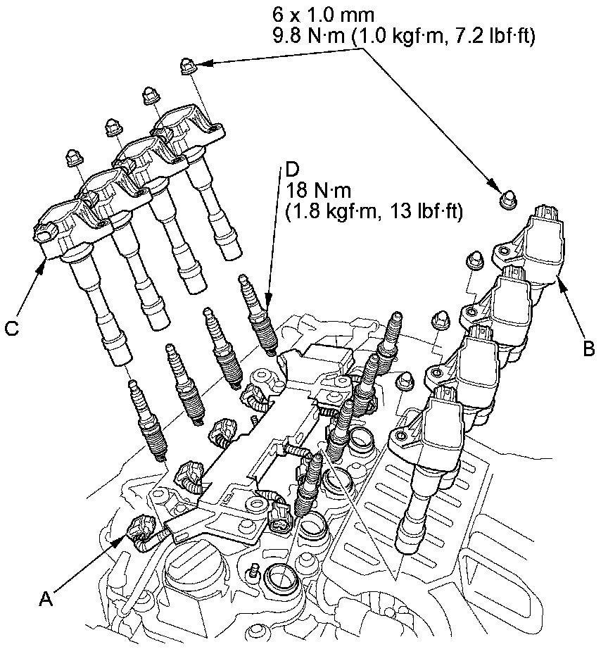 5. Install the ignition coils in the reverse order of removal.