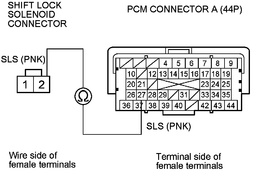 Repair open in the wire between PCM connector terminal A27 and the shift lock solenoid connector.�