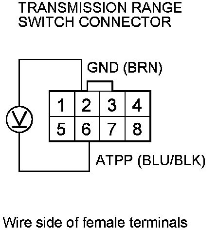 25. Measure the voltage between transmission range switch connector terminals No. 2 and No. 6.