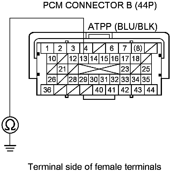 30. Check for continuity between PCM connector terminal B13 and body ground.