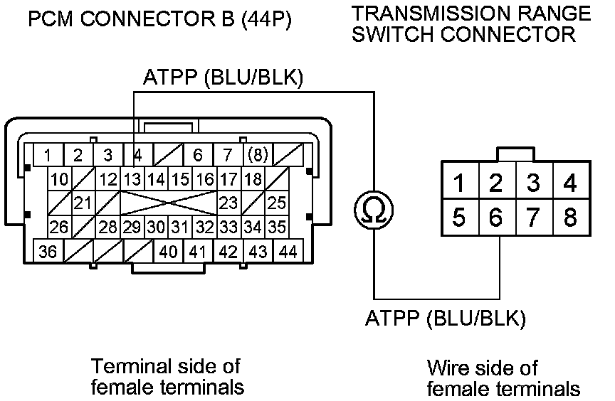 Check for poor connections and loose terminals at the transmission range switch connector.