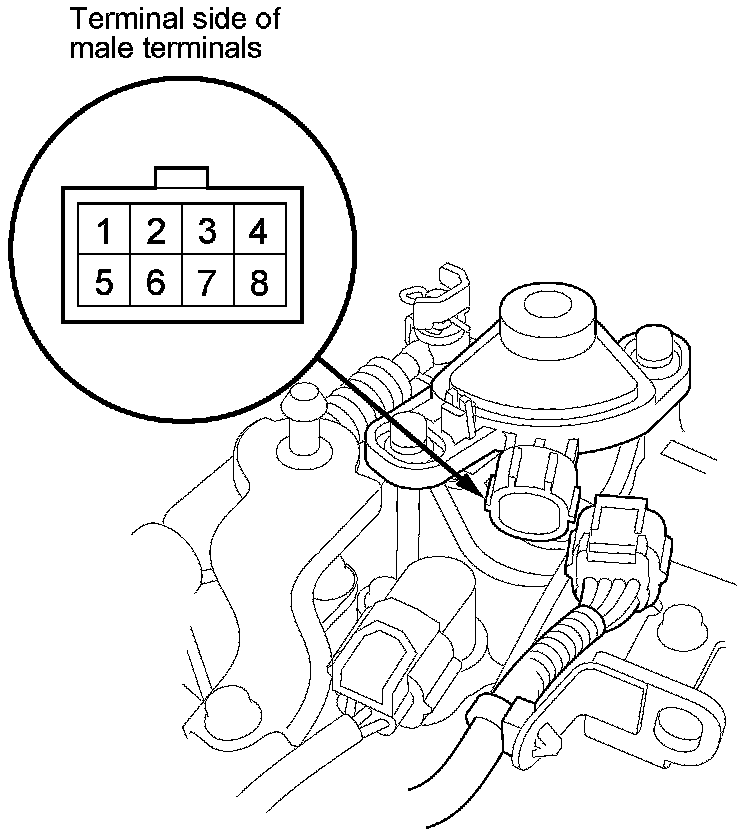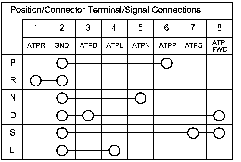 3. Check for continuity between terminals at the transmission range switch connector. There should be continuity between the terminals in the following table for each switch position.