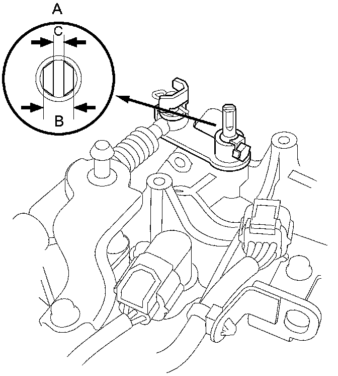 6. If the measurement of the selector control shaft end is within the standard, replace the transmission range switch Service and Repair. If the measurement is out of the standard, repair the selector control shaft end, and recheck the transmission range switch continuity.