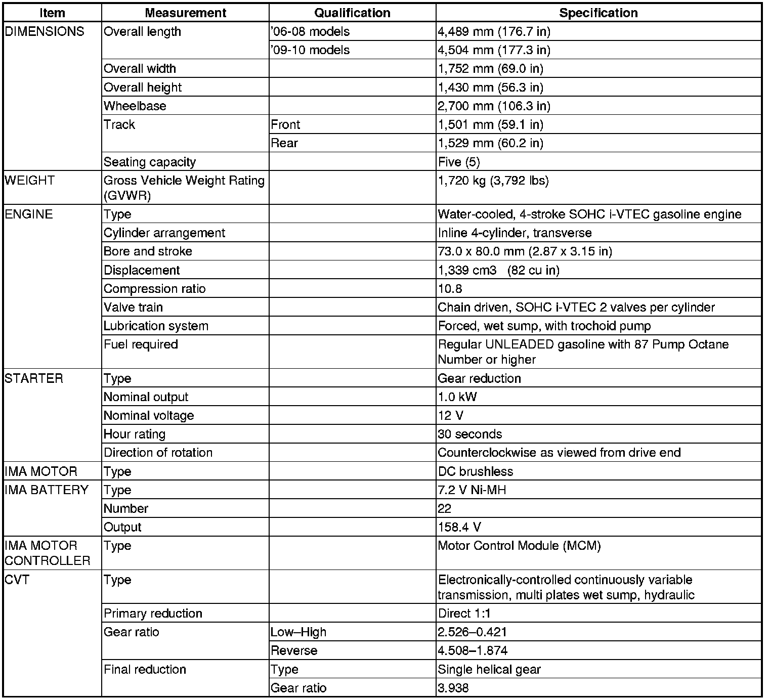 Civic L4-1.3L Hybrid