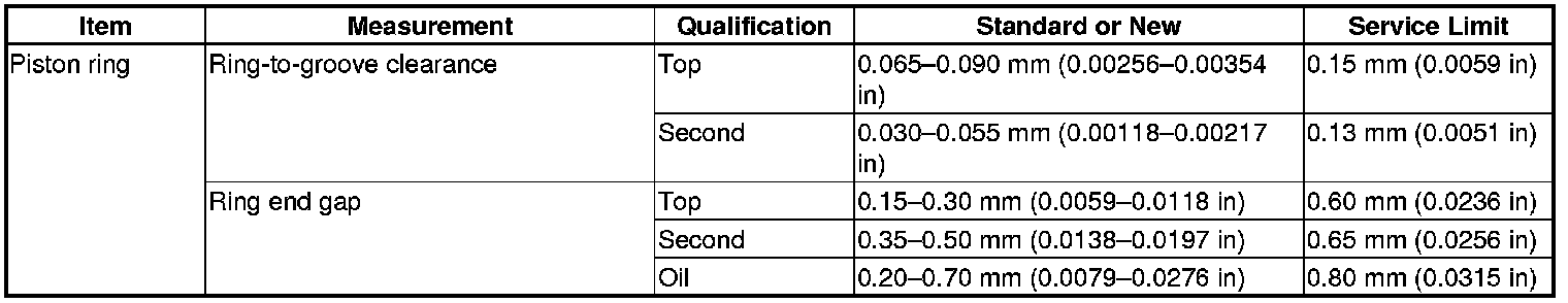 Piston Ring Specification(s)