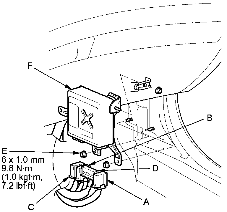 4. Disconnect EPS control unit connectors A (2P), connector B (2P), connector C (2P), and connector D (28P).