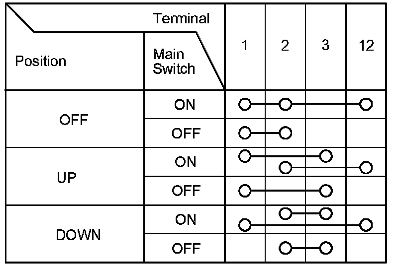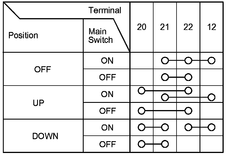 The driver's switch is combined with the control unit so you cannot isolate the switch to test it. Instead, run the power window master switch input test procedures Power Window Master Switch Input Test. If the tests are normal, the driver's switch must be faulty. Replace the switch.