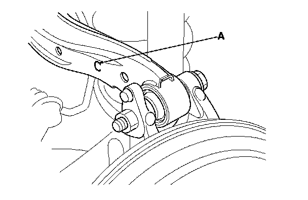 10. Replace the damper pinch bolts with the adjusting bolts (A), and adjust the camber angle.
