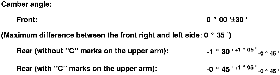 - If the measurement for the front camber is outside the specification, go to front camber adjustment.