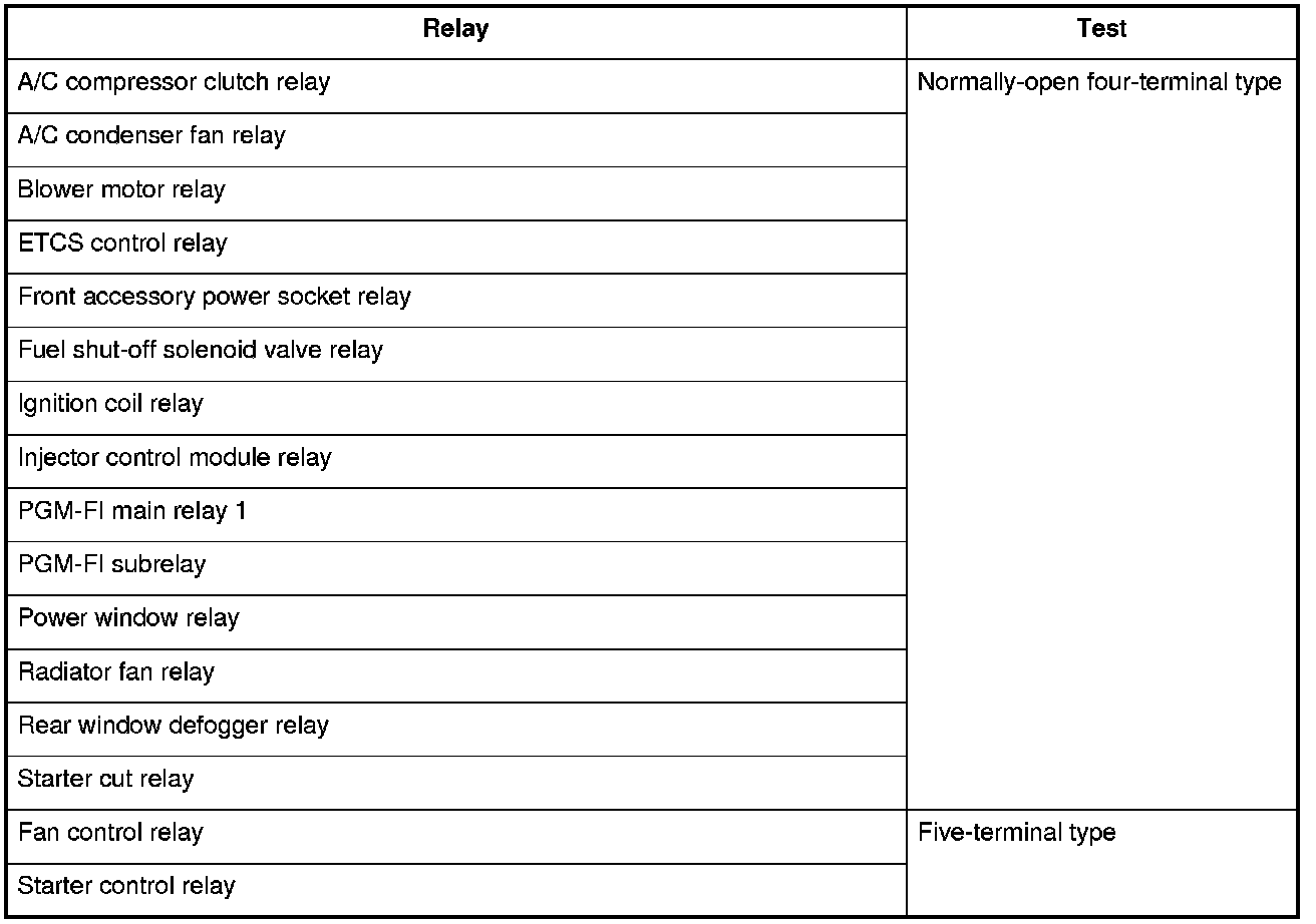 Use this chart to identify the type of relay, then do the test listed for it.