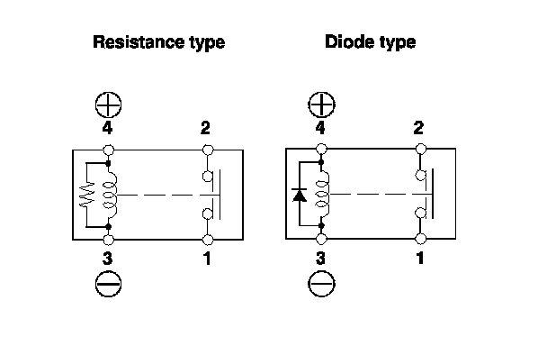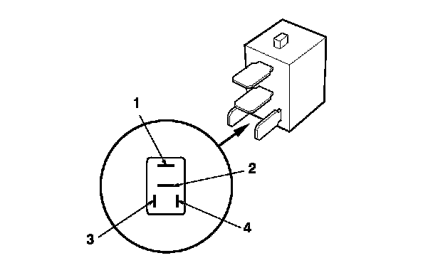 - There should be continuity between terminals No. 1 and No. 2 when battery power is connected to terminal No. 4, and body ground is connected to terminal No. 3.