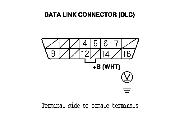 25. Measure the voltage between DLC terminal No. 16 and body ground.