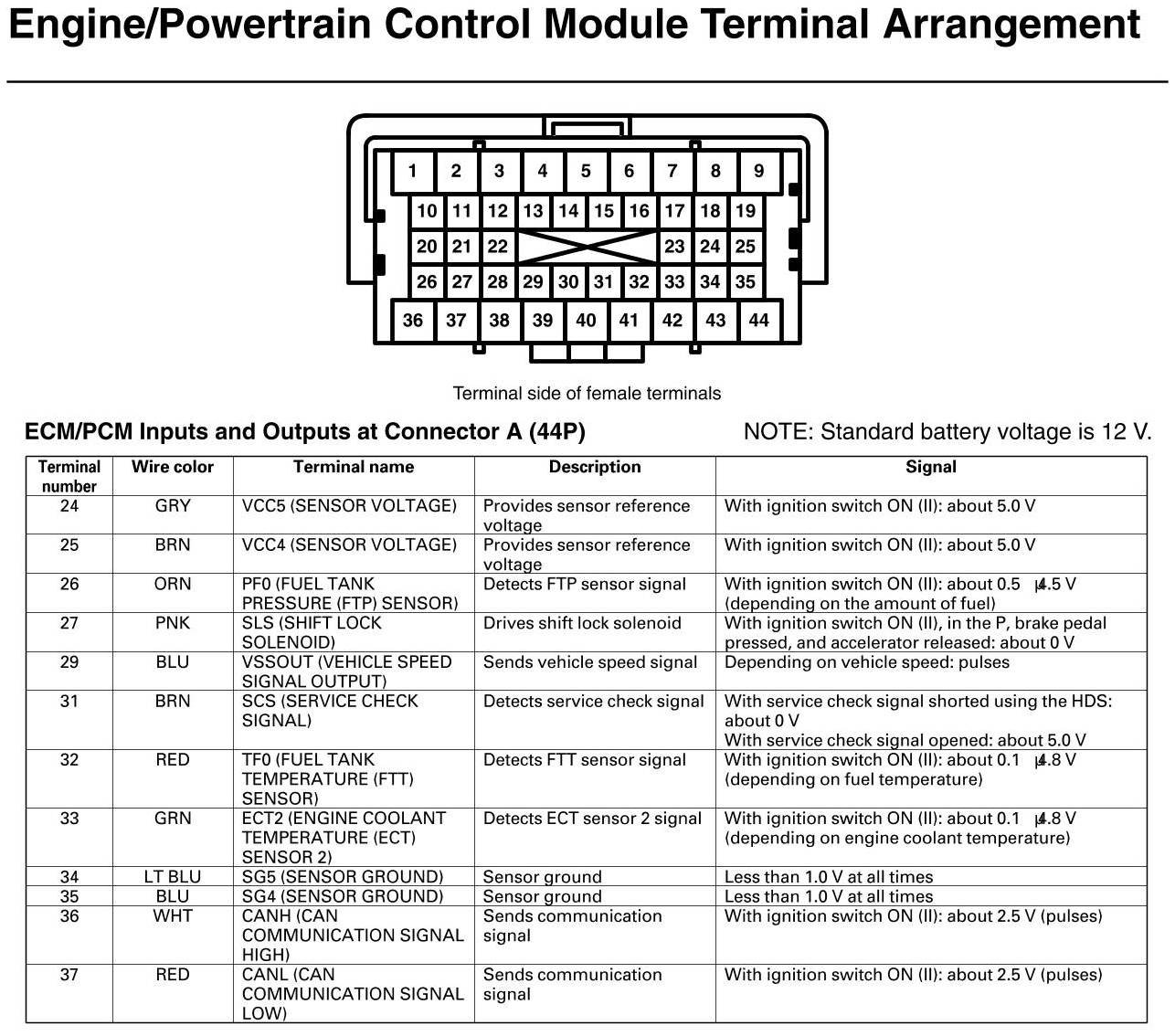 ECM/PCM Inputs And Outputs At Connector A (GX)