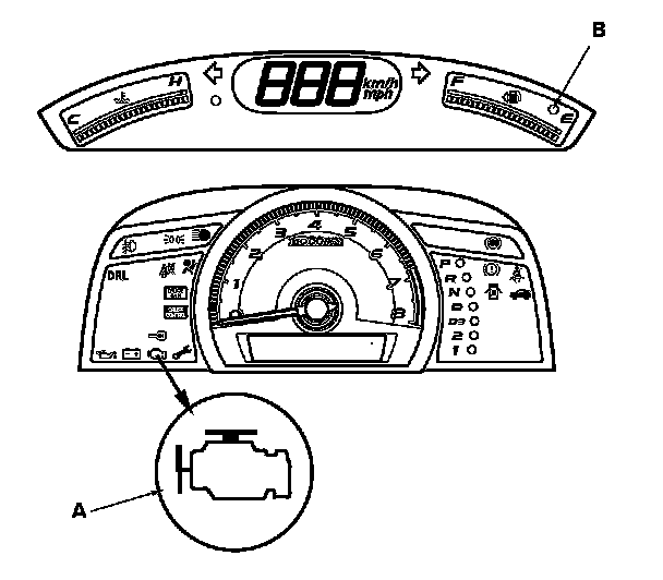 1. Start the engine and check the MIL (A) or the low fuel indicator (B).