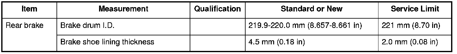 Rear brake Specifications