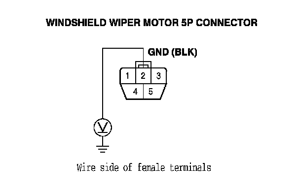 11. Measure the voltage between terminal No. 5 of the windshield wiper motor 5P connector and body ground.