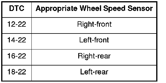 DTC 12-22: Right-front Wheel Speed Sensor Installation Error (19 mph (30 km/h) or More)