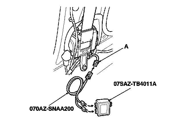 9. Connect the SRS inflator simulator (2 Ohms connectors) and simulator lead K to the floor wire harness.
