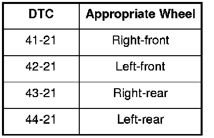 DTC 41-21: Right-front Wheel Lock