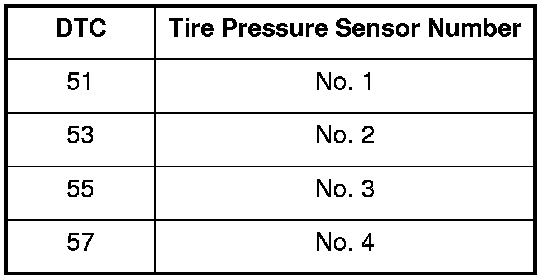 DTC 51, 53, 55, 57: Tire Pressure Sensor Registration Error