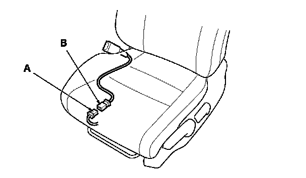 7. Disconnect the floor wire harness 3P connector (A) from the driver's seat belt buckle switch 3P connector (B).