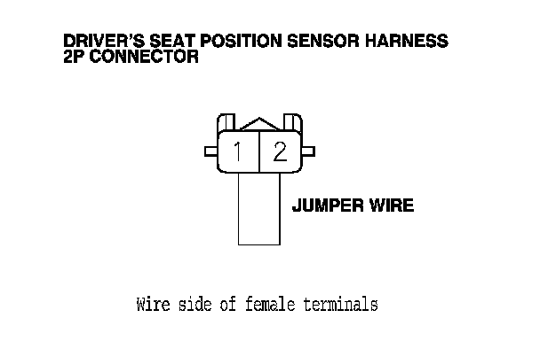 10. Install a jumper wire between driver's seat position sensor harness 2P connector terminals No. 1 and No. 2.