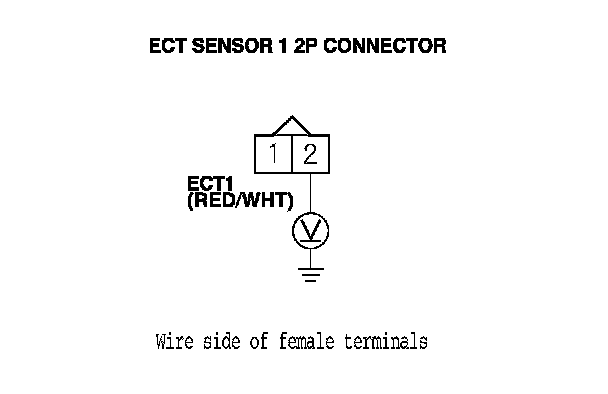 11. Measure the voltage between the ECT sensor 1 2P connector terminal No. 2 and body ground.