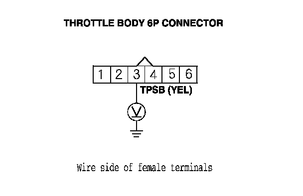 8. Measure the voltage between throttle body 6P connector terminal No. 3 and body ground.