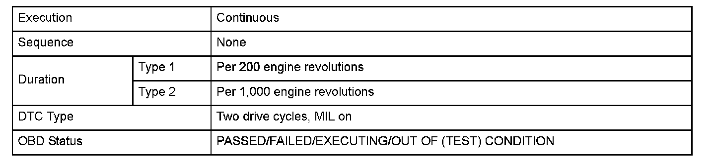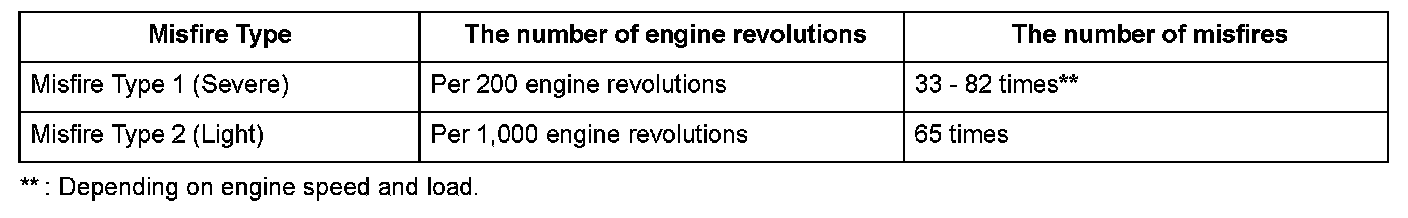 Type 2 (2 drive cycles): When the number of misfires per 1,000 engine revolutions reaches the level that affects FTP mode exhaust emissions, a DTC is stored and the MIL comes on.