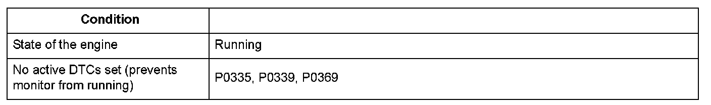 The camshaft position (CMP) sensor consists of a rotor and a semiconductor that detects rotor position. When the rotor turns after starting the engine, the changes of magnetic flux in the semiconductor are converted into pulsing signals to the powertrain control module (PCM). The CMP sensor detects the top dead center of each cylinder for fuel injection timing. If no CMP sensor pulsing signals are detected, a malfunction is detected and a DTC is stored.