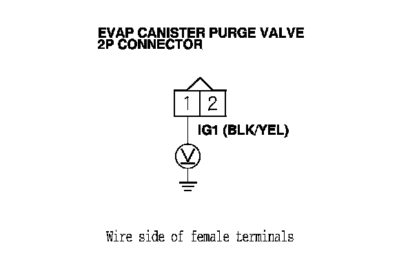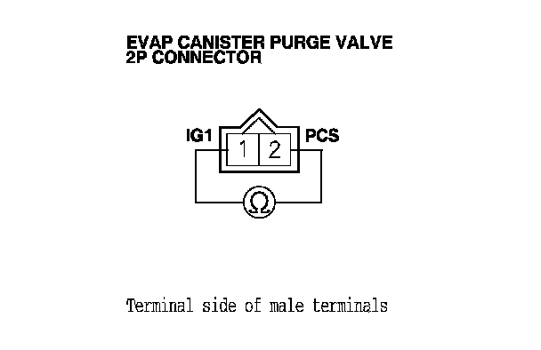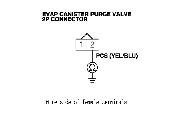 22. At the purge valve side, measure the resistance between EVAP canister purge valve 2P connector terminals No. 1 and No. 2.