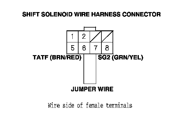 10. Connect shift solenoid wire harness connector terminals No. 6 and No. 7 with a jumper wire.
