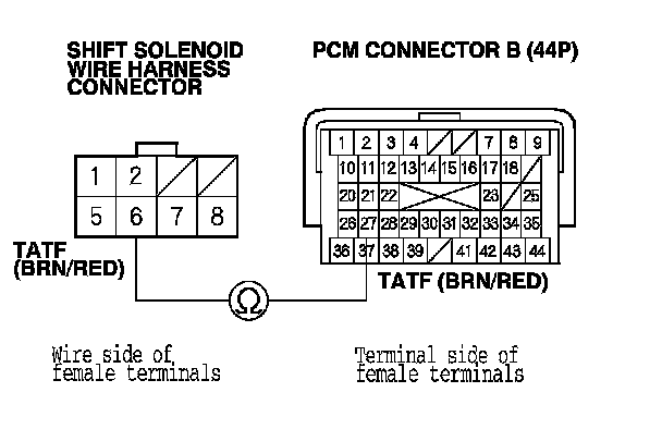 4. Disconnect the shift solenoid wire harness connector.