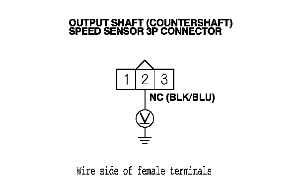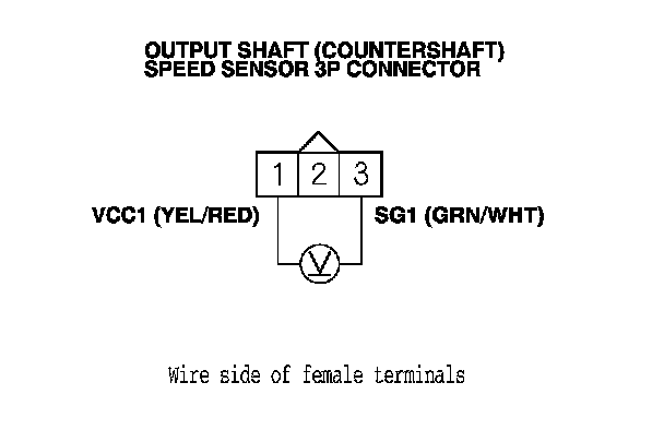 9. Measure the voltage between output shaft (countershaft) speed sensor 3P connector terminals No. 1 and No. 3.