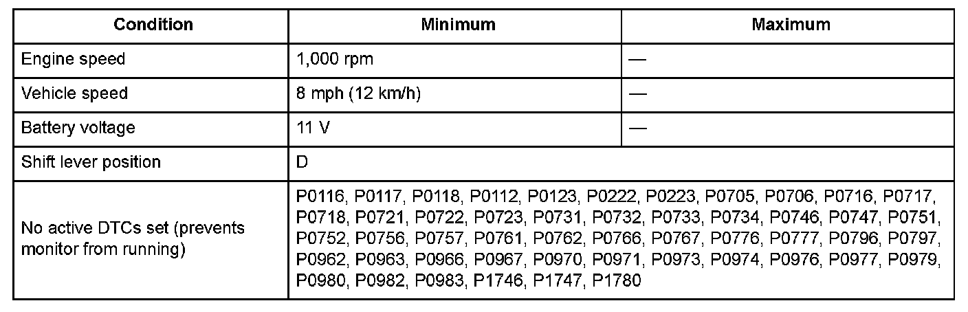 2. Drive the vehicle in D at a speed of 8 mph (12 km/h) or more for at least 12 seconds in 5th gear.