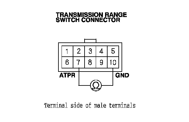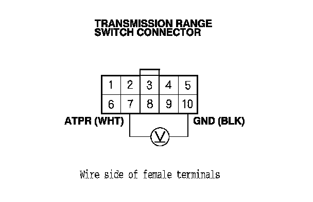 6. Measure the voltage between transmission range switch connector terminals No. 7 and No. 10.