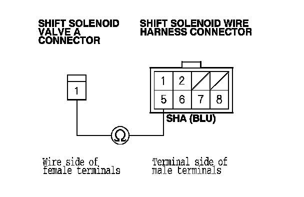 YES - Check for poor connections or loose terminals between shift solenoid valve A and the PCM, then go to step 1.
