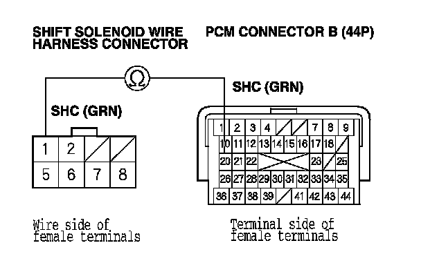 NO - Repair open in the wire between PCM connector terminal B20 and the shift solenoid wire harness connector, then go to step 16.