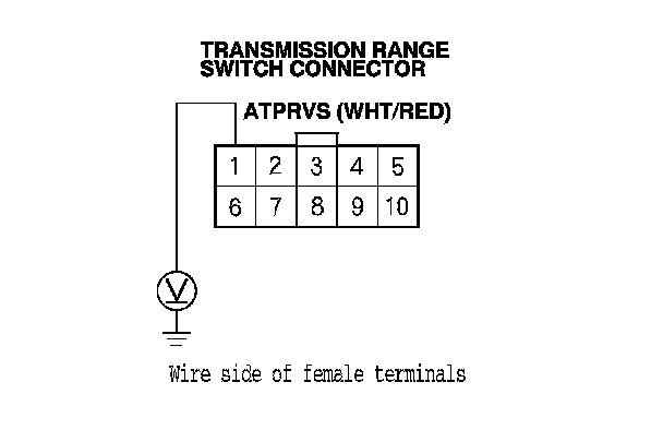 7. Measure the voltage between transmission range switch connector terminal No. 1 and body ground.