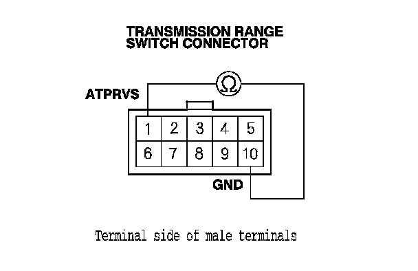 8. Check for continuity between transmission range switch connector terminals No. 1 and No. 10 when the shift lever is in R, and when the shift lever is shifted to any position other than R.