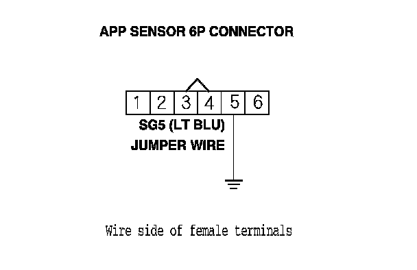 10. Connect APP sensor 6P connector terminal No. 5 to body ground with a jumper wire.