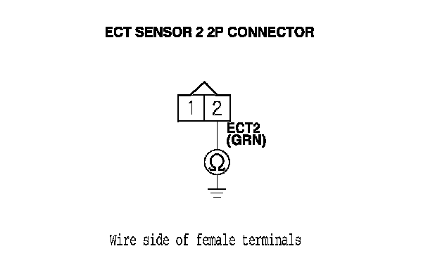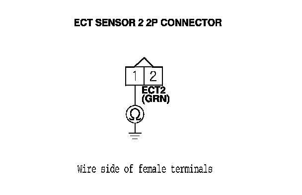 10. Check for continuity between ECT sensor 2 2P connector terminal No. 2 (No. 1)* and body ground.