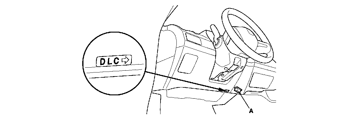 2. Connect the HDS to the data link connector (DLC) (A) located under the driver's side of the dashboard.