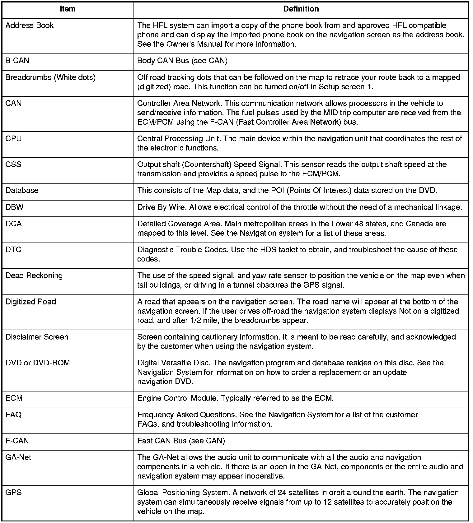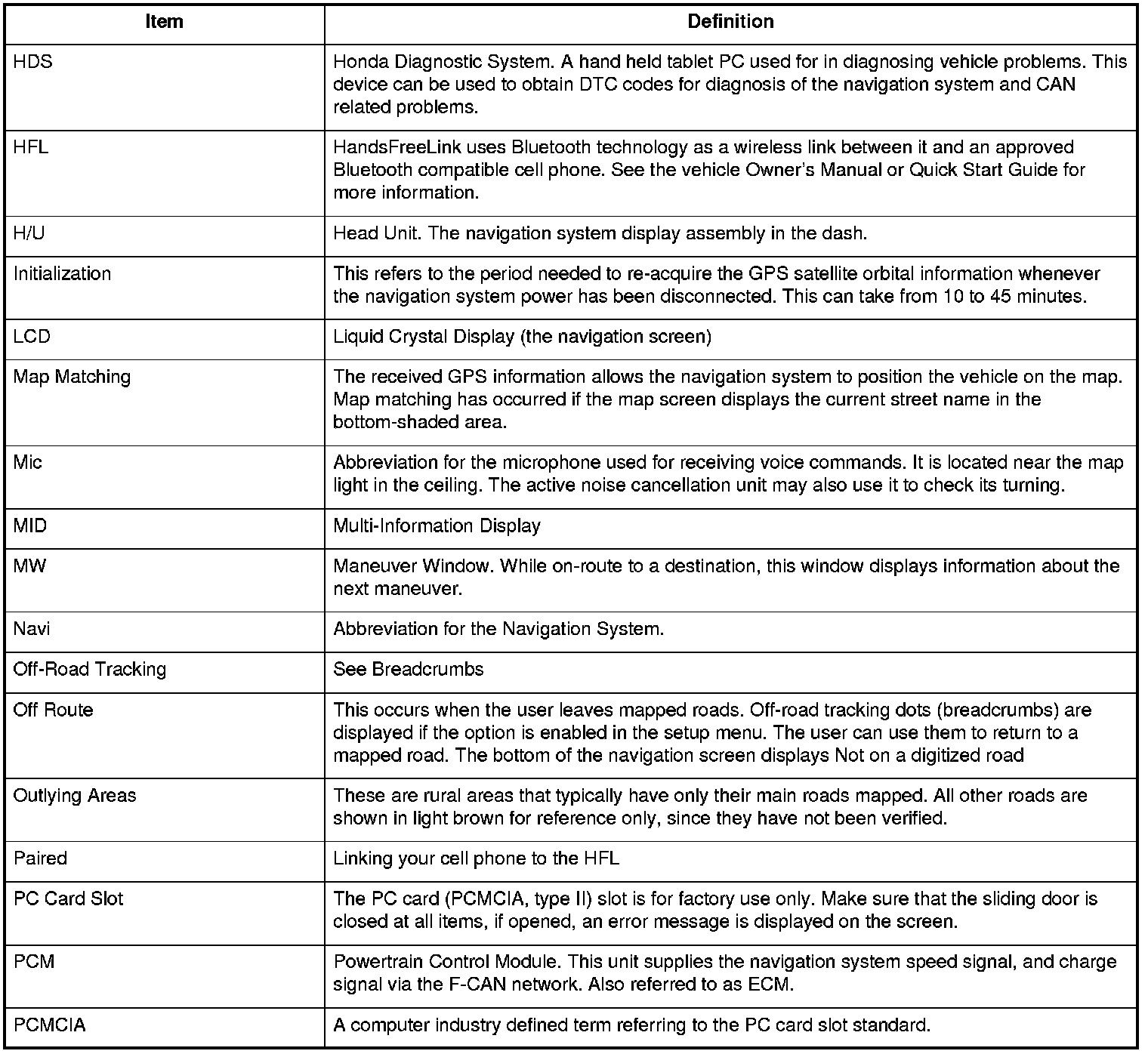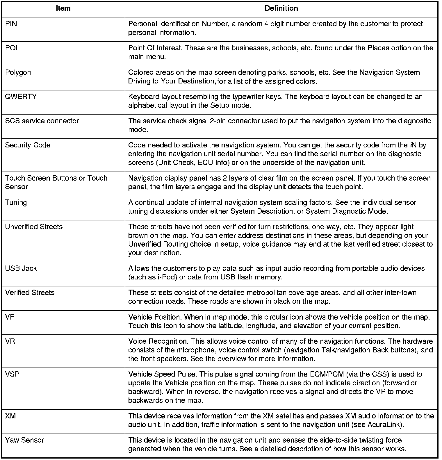 The following is a glossary of terms pertaining to the Voice Recognition Navigation System.