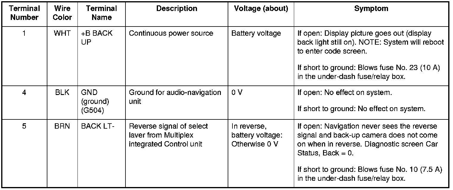 Navigation Unit Inputs and Outputs for Connector D (12P)