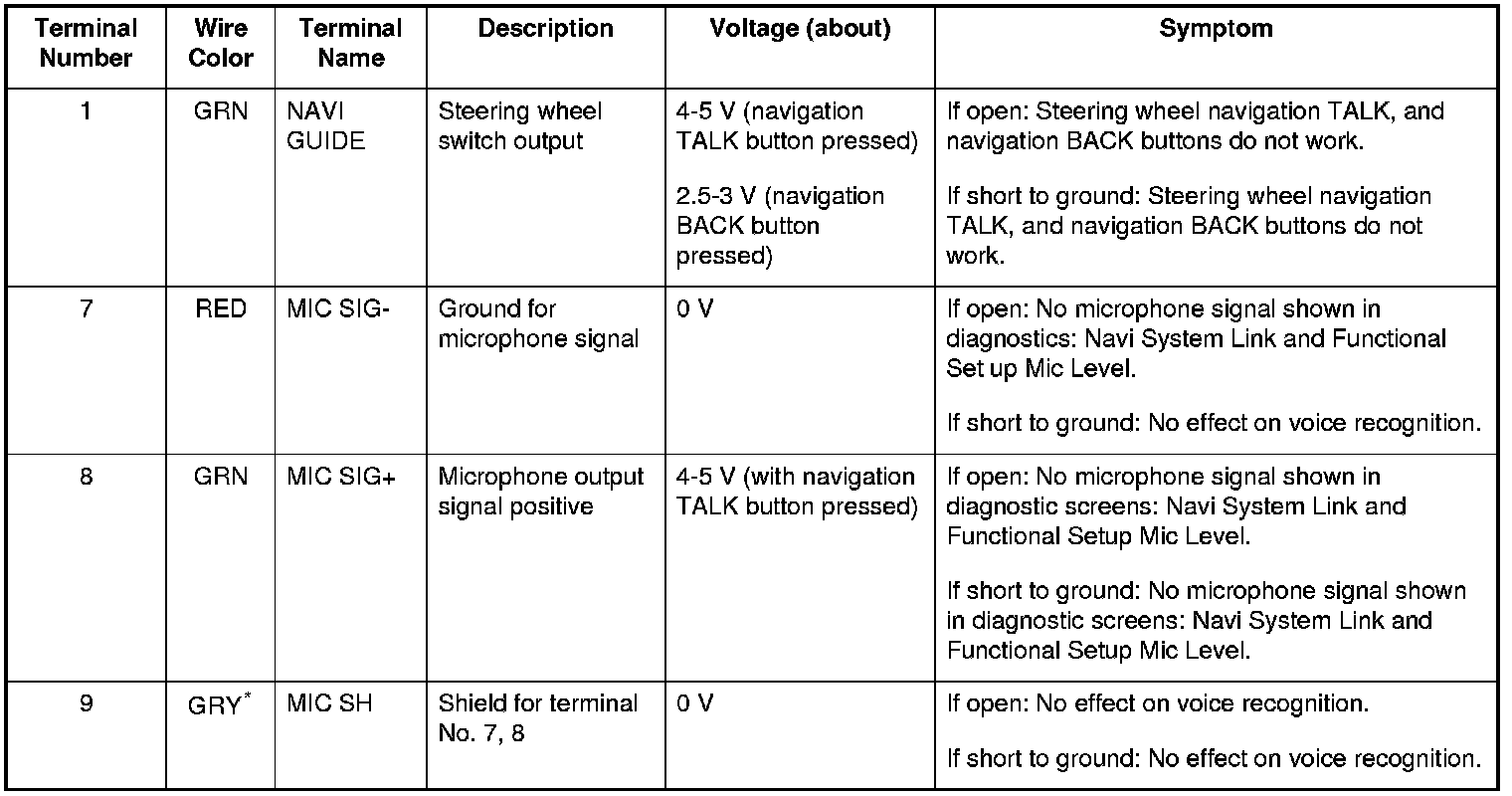 Navigation Unit Inputs and Outputs for Connector H (2P)