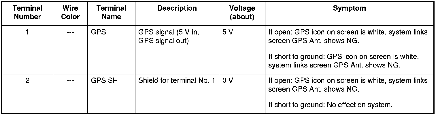 The GPS receiver is built into the audio-navigation unit. It calculates the vehicle position by receiving the signal from the GPS antenna. The current time, vehicle position and signal reception condition is transmitted from the GPS receiver to the audio-navigation unit to adjust vehicle position.