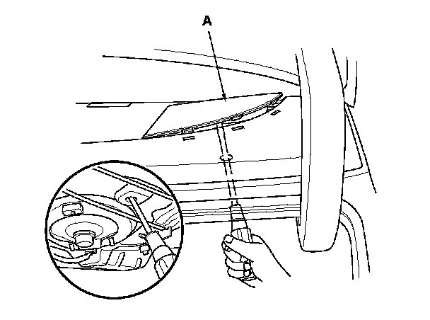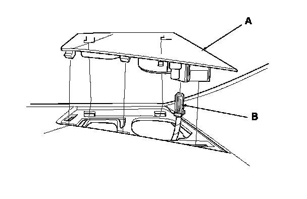 1. Carefully pry the tweeter grille (A) out of the dashboard. Be careful not to damage the tweeter grille and the dashboard.