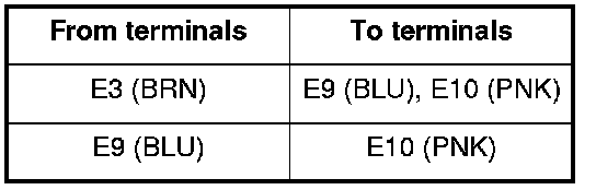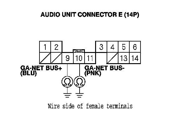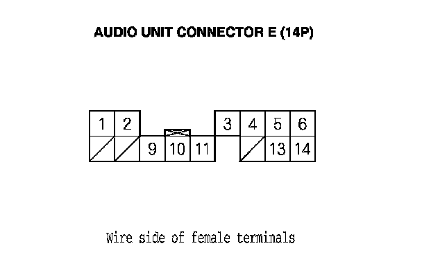 23. Check for continuity between the terminals of audio unit connector E (14P) according to the table.